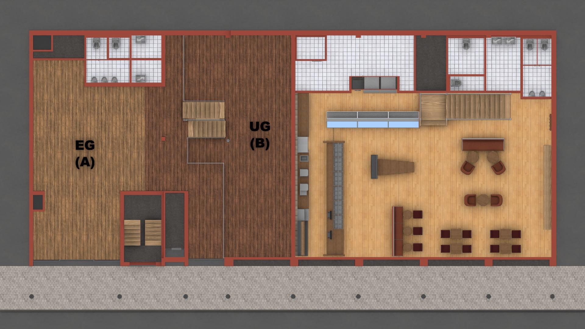 Ansichten von Oben: EG + 1.OG + 2.OG